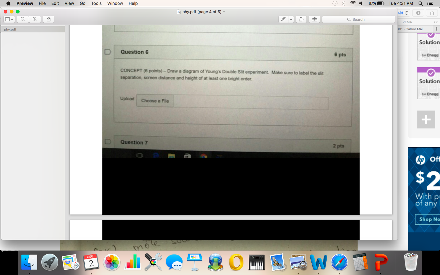 (3). In a double slit experiment as shown, the central point...