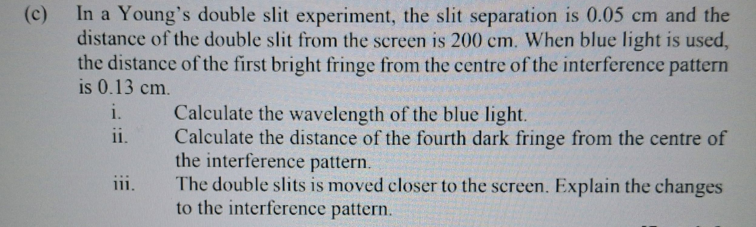 (c) In a Young's double slit experiment, the | StudyX