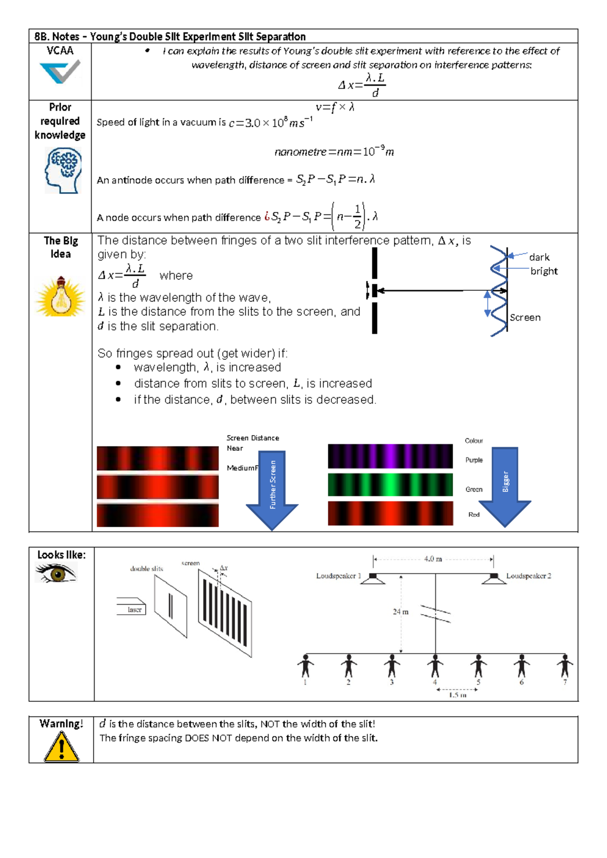 8B. Double Slit Experiment Notes: Wavelength & Slit Separation Effects ...