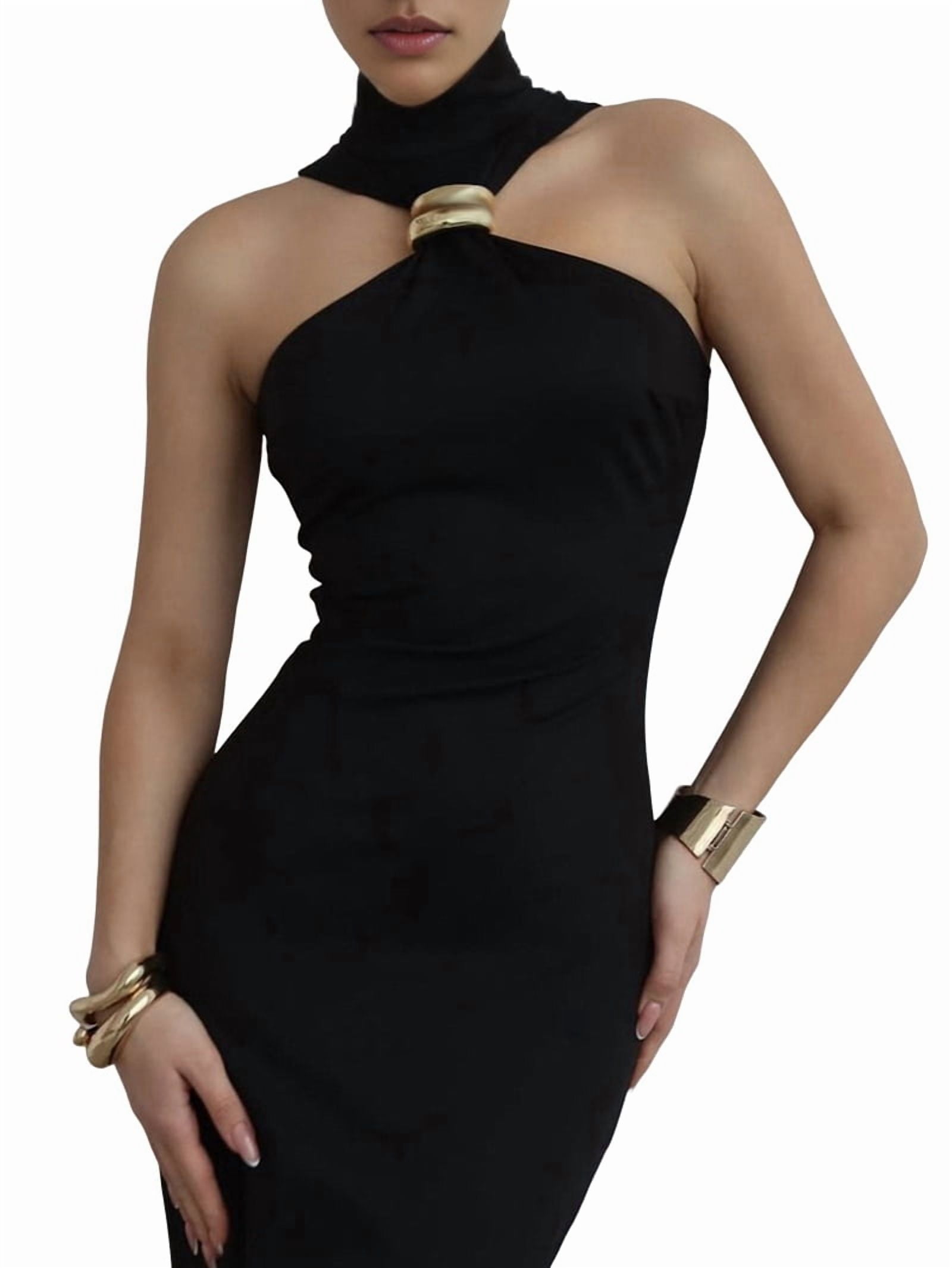 Women Halter High Neck Maxi Dress Sleeveless Back Slit Elegant Party ...