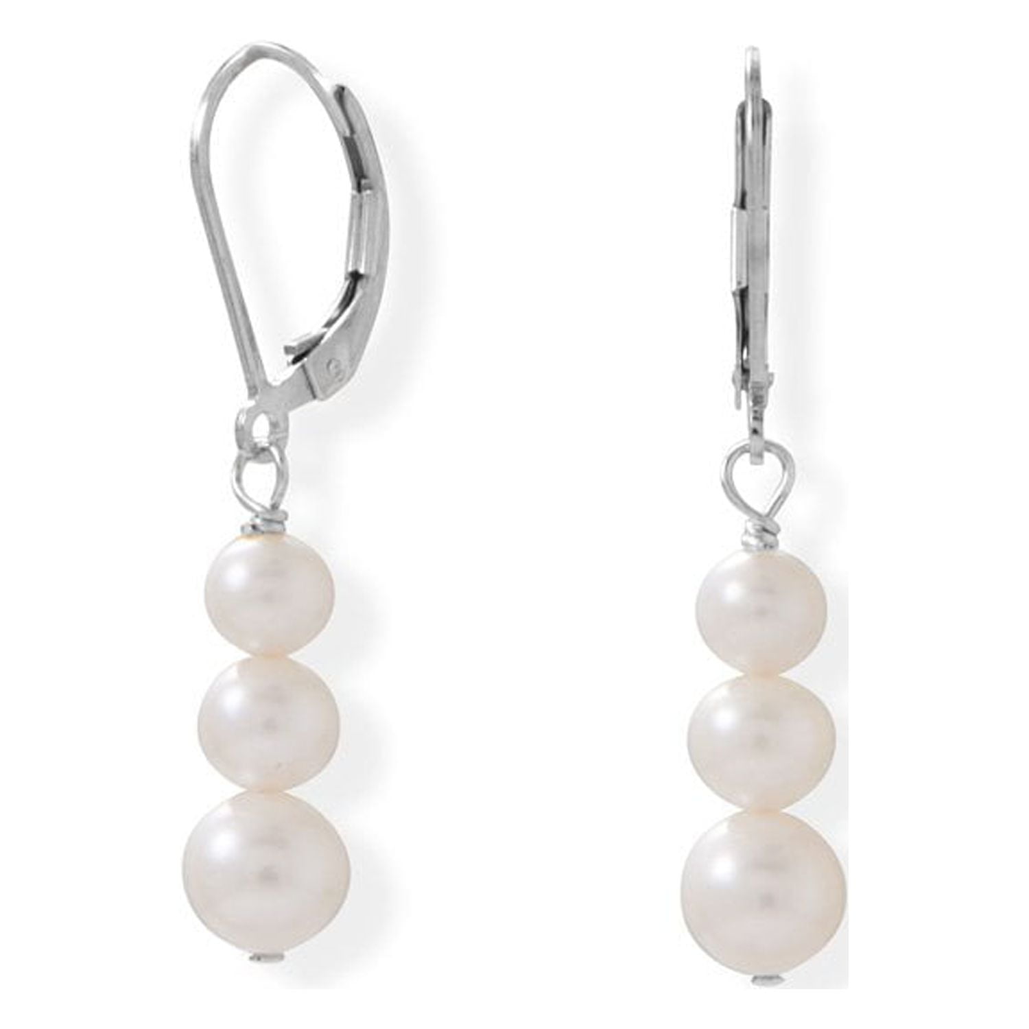 Precious Stars Sterling Silver Stacked Cultured Freshwater Pearl Lever ...