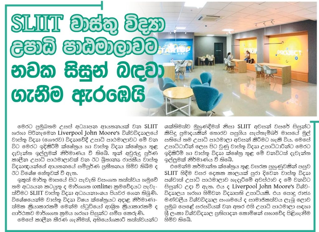 SLIIT School of Architecture Invites Students to Embark on Globally ...