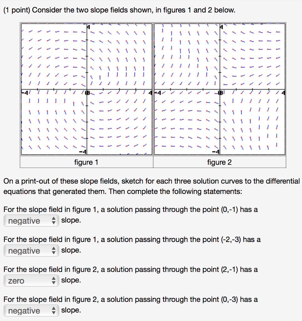 SOLVED: point) Consider the two slope fields shown; in figures and ...