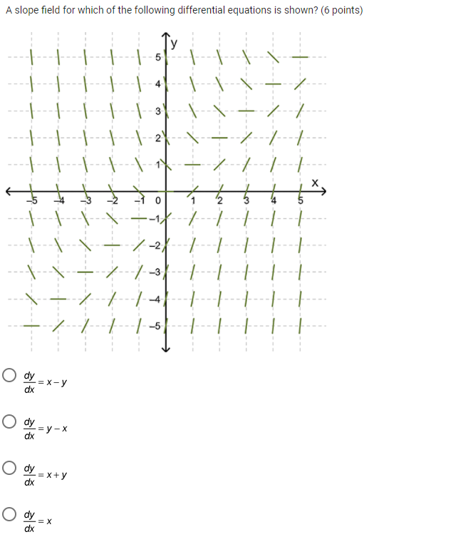 Solved (1 point) The slope field for the equation y′=−x+y is | Chegg.com
