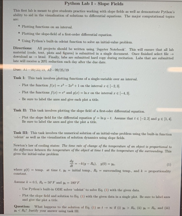 Python Lab I - Slope Fields This first lab is meant | Chegg.com
