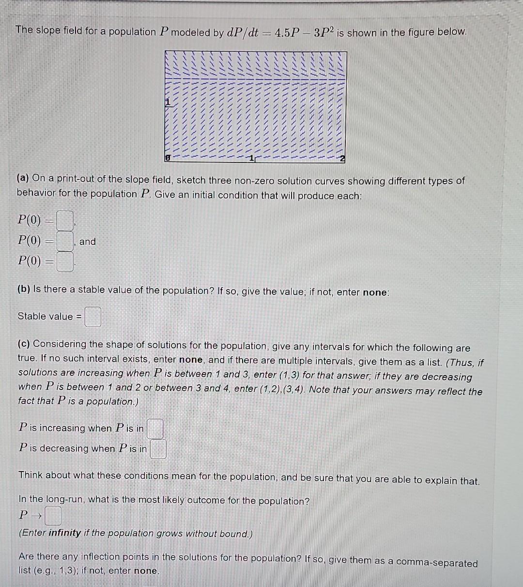Solved The slope field for a population P modeled by | Chegg.com
