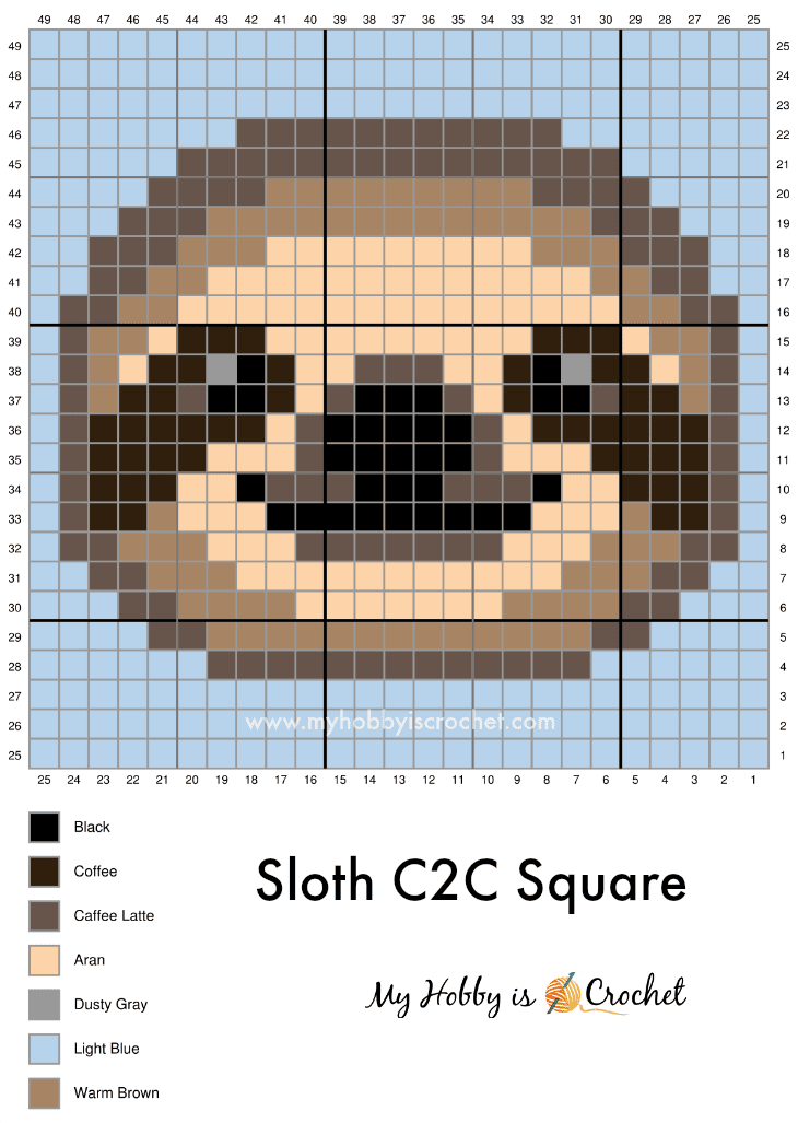 My Hobby Is Crochet: Free Crochet Pattern: Sloth C2C Square - Wildlife ...
