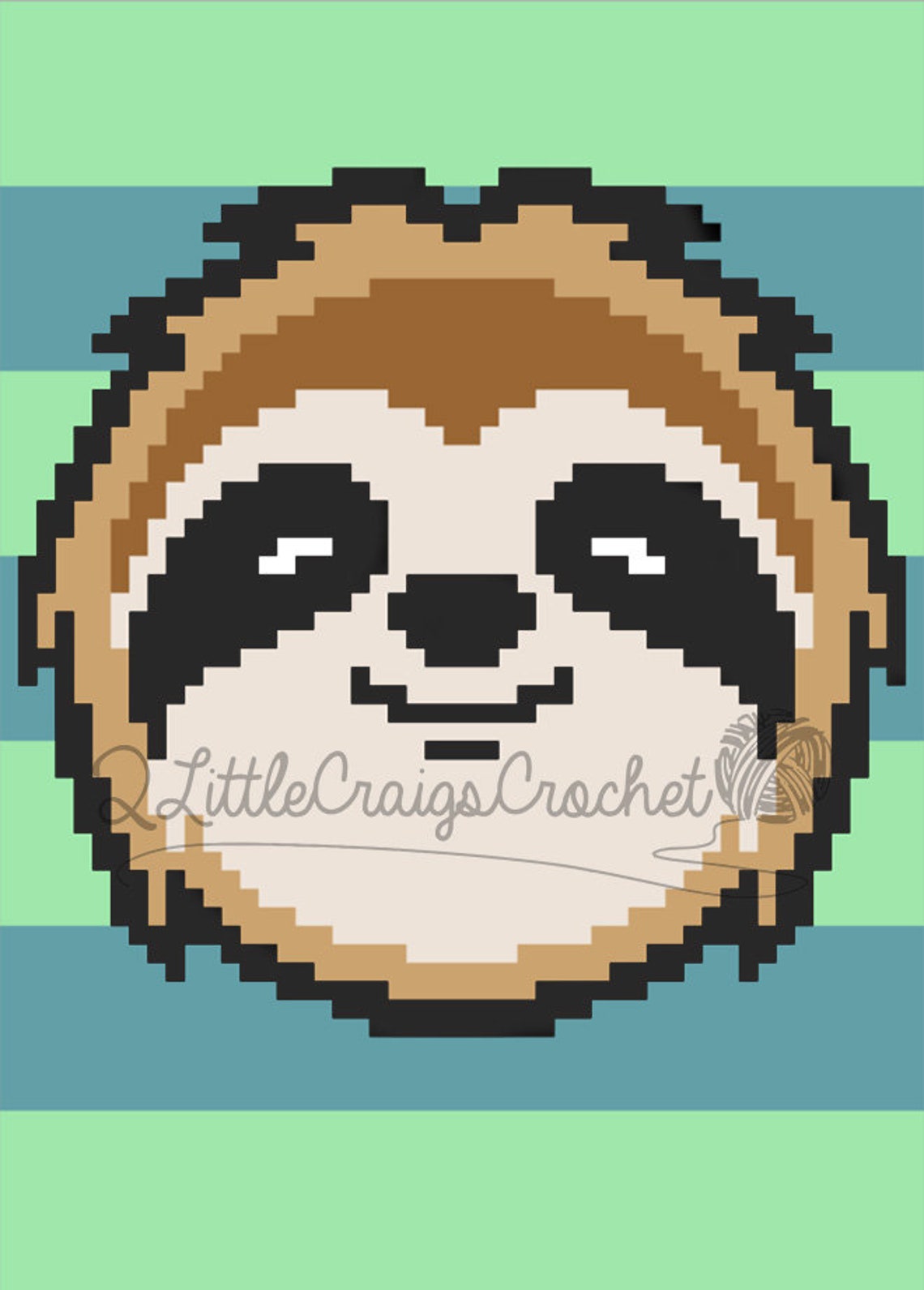 Smiley Sloth C2C graph, SC graph, cross stitch graph by Two Magic Pixels