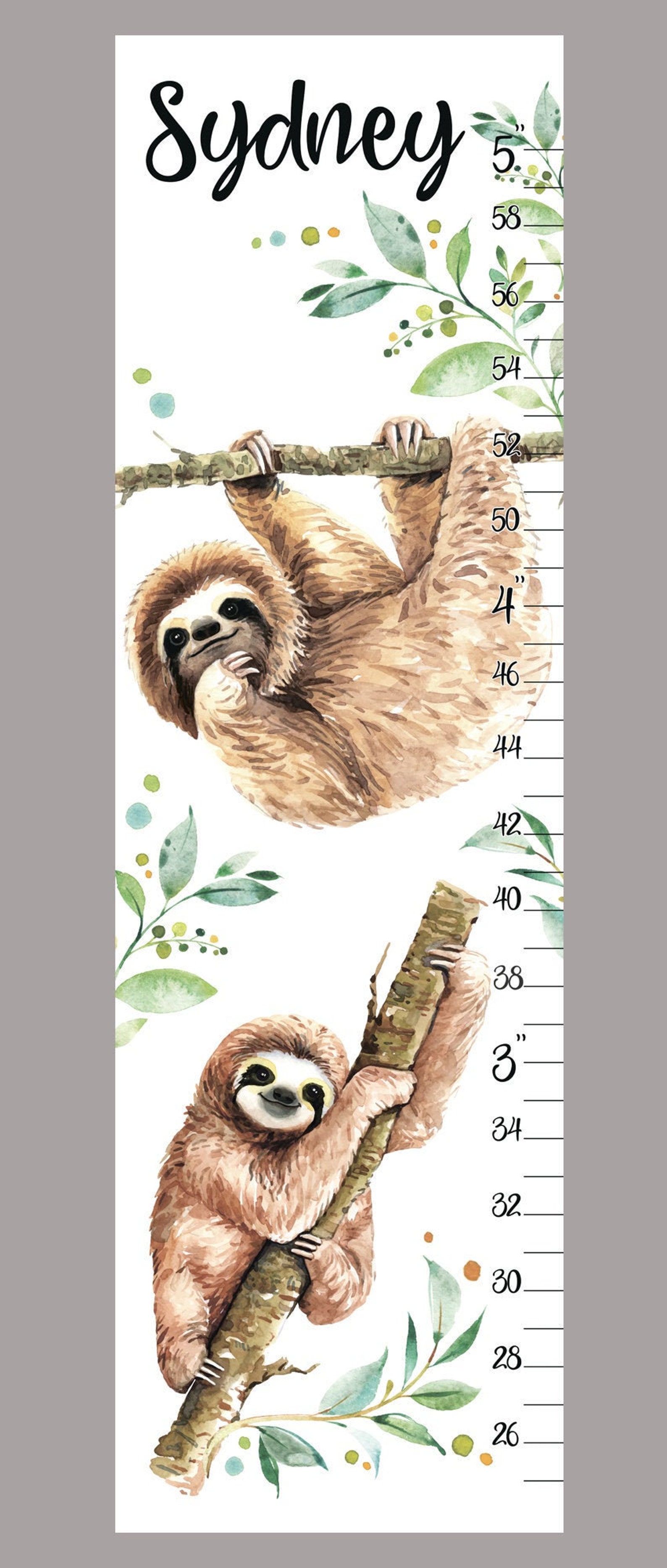 Sloth GROWTH CHART Sloth Personalized Kids Growth Chart | Etsy