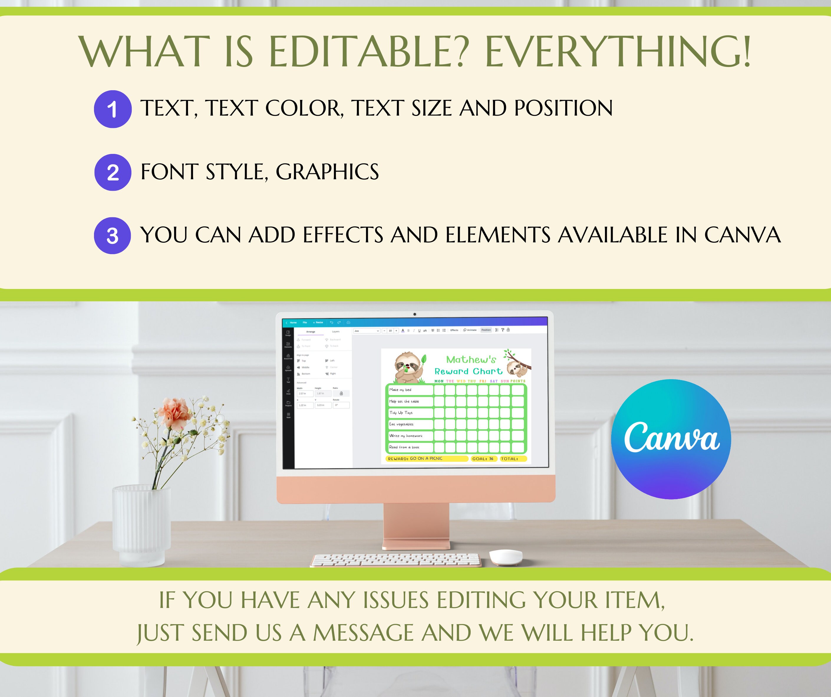 Editable Sloth Reward Chart for Kids Daily Routine Chart Kids Chore ...