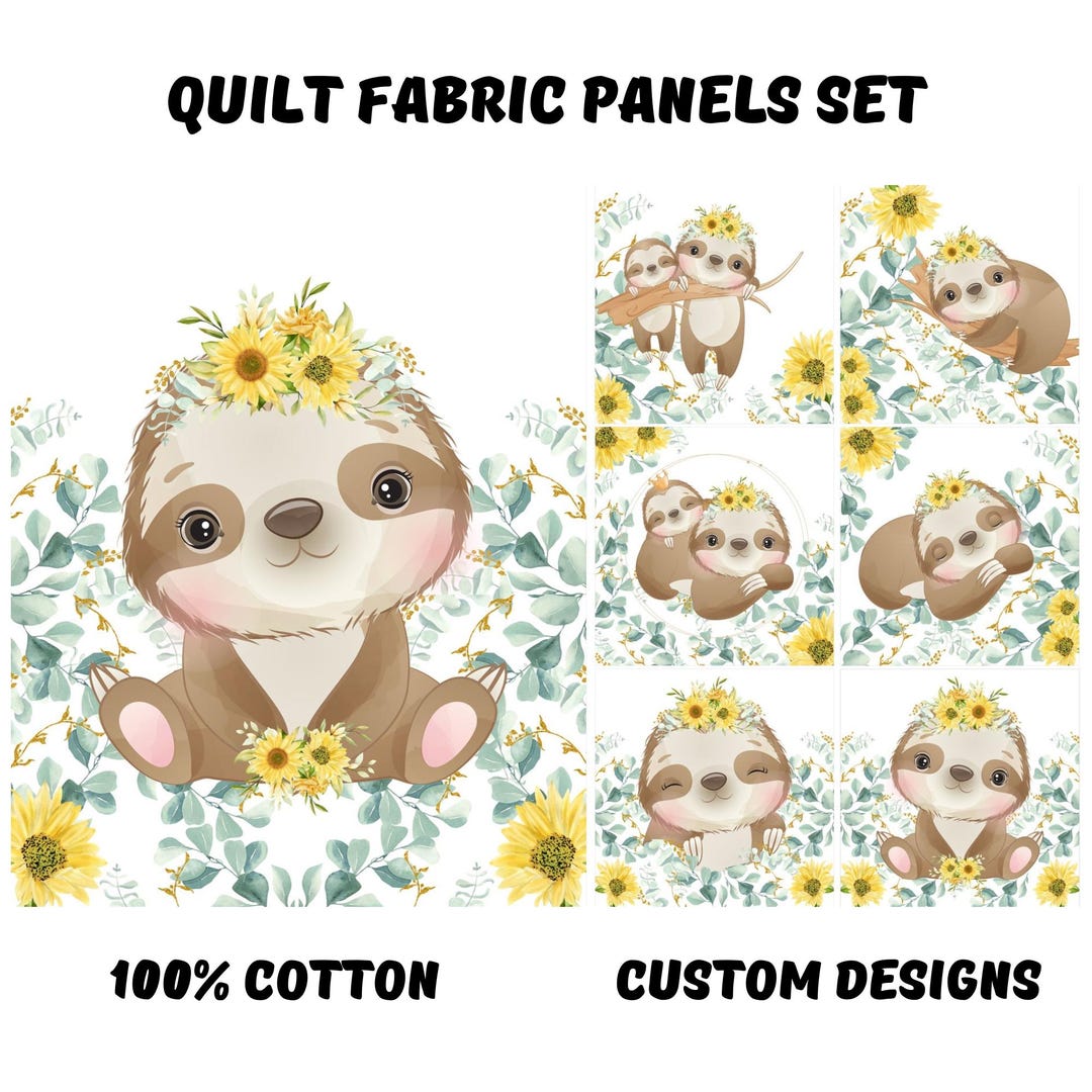 Sloth Baby Quilt Fabric Panel, Sloth Panel Fabric With Sunflowers ...