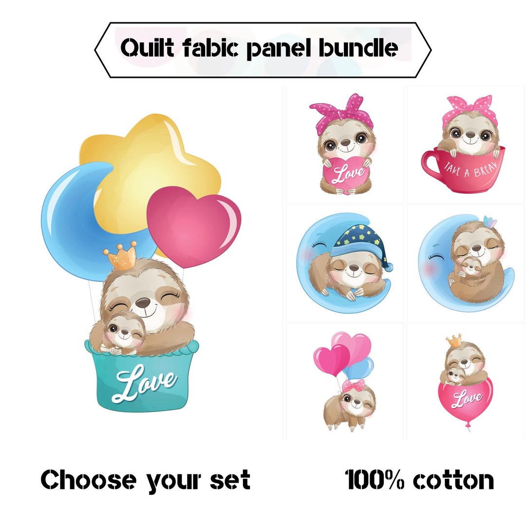 Cute Sloths Quilting Fabric Panel Set. Quilt Panels. Cotton - Etsy