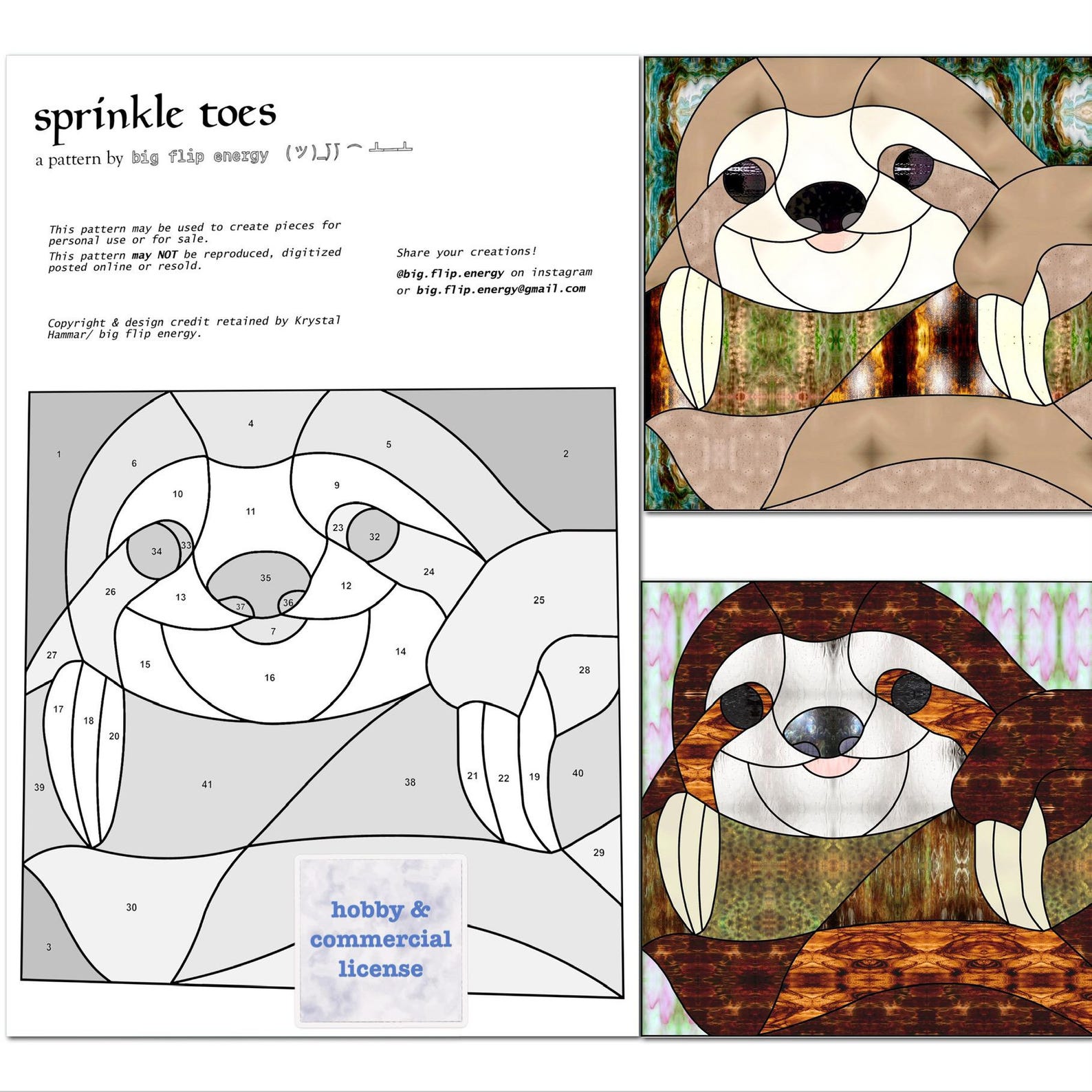 Sloth Stained Glass Pattern: Wild Nature Panel Template (PDF Download ...