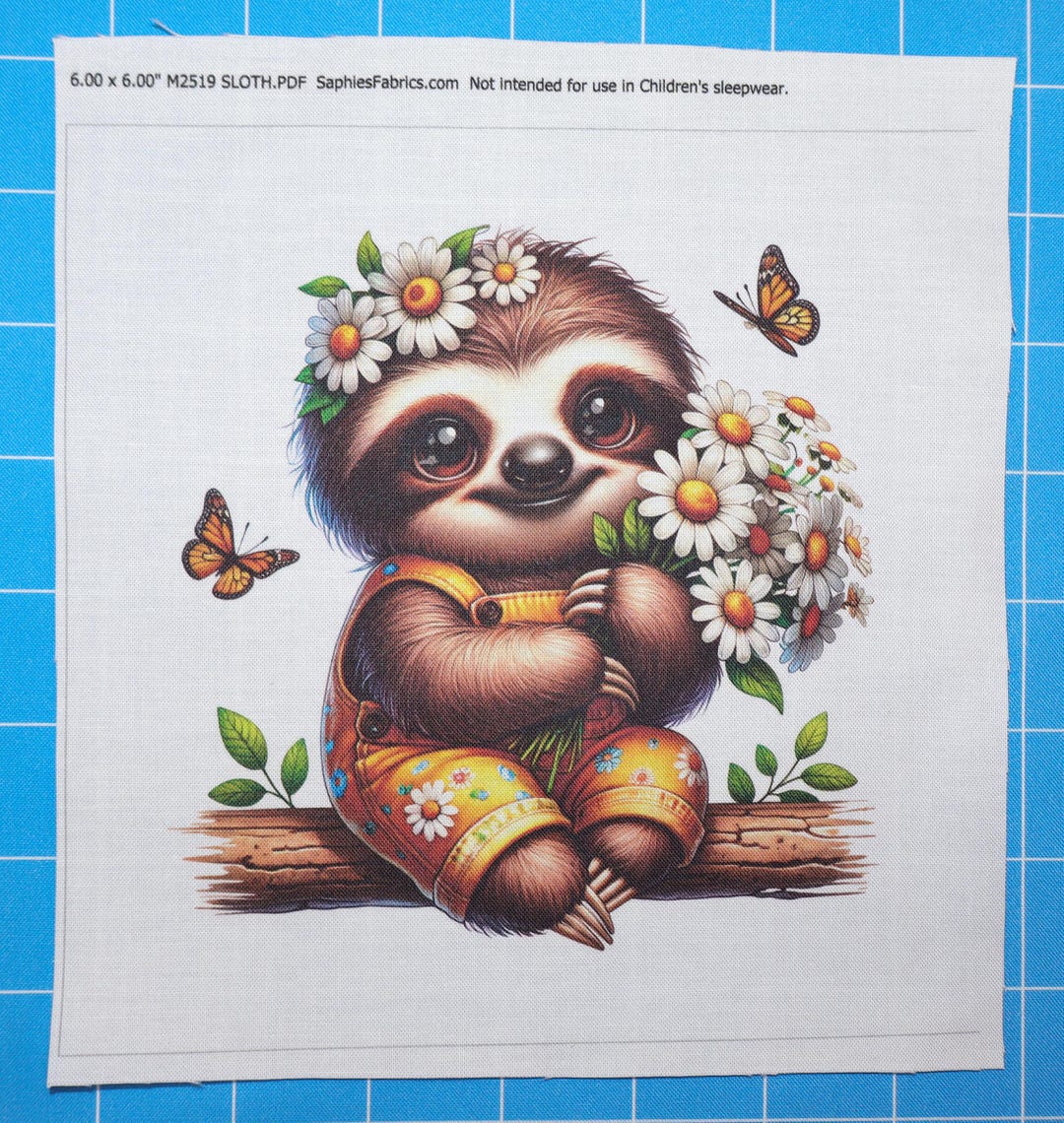 Floral Sloth 100% Cotton Fabric Panel Square - Small Sewing Quilting ...