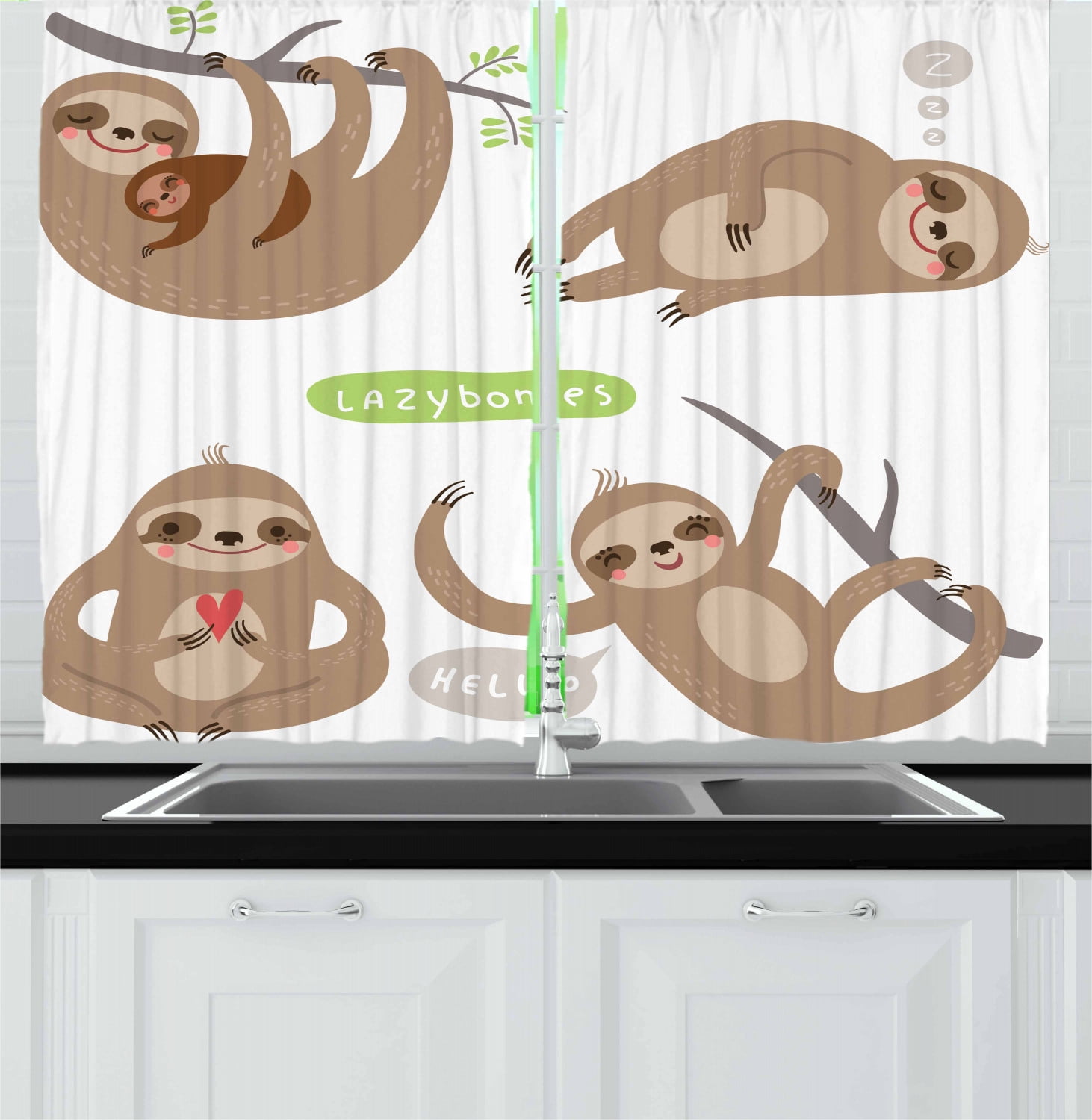 Sloth Kitchen Curtains 2 Panel Set Window Drapes 55" X 39" Ambesonne | eBay