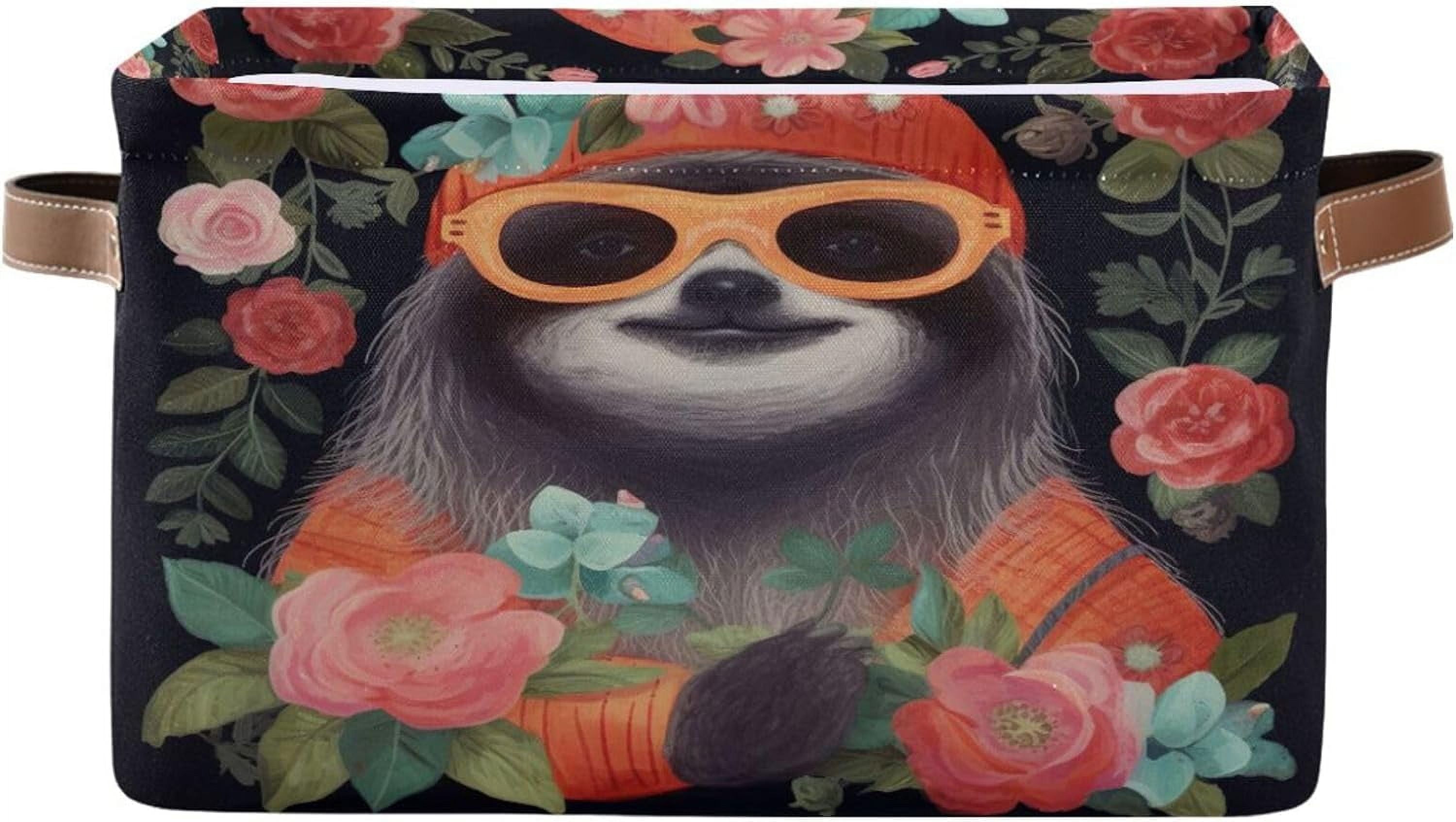FREEAMG Cute Sloths and Floral Elements Storage Basket, Durable Canvas ...