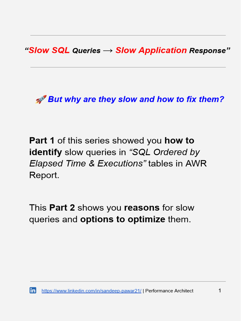 Slow SQL: Performance, Optimization & Troubleshooting Issues