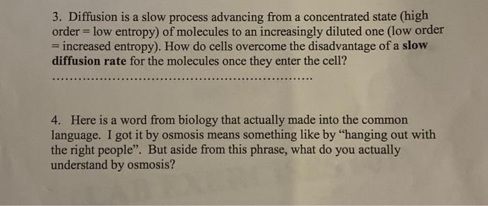 Solved 3. Diffusion is a slow process advancing from a | Chegg.com