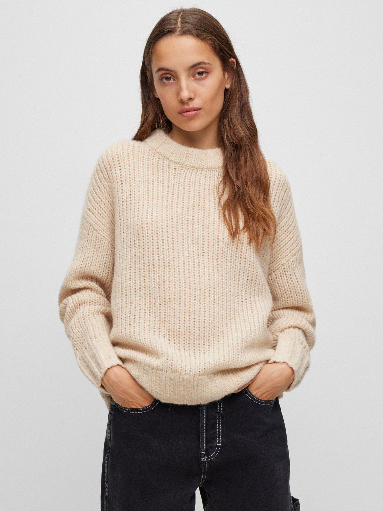 HUGO Womens Light Beige Sloos Jumper | Designerwear