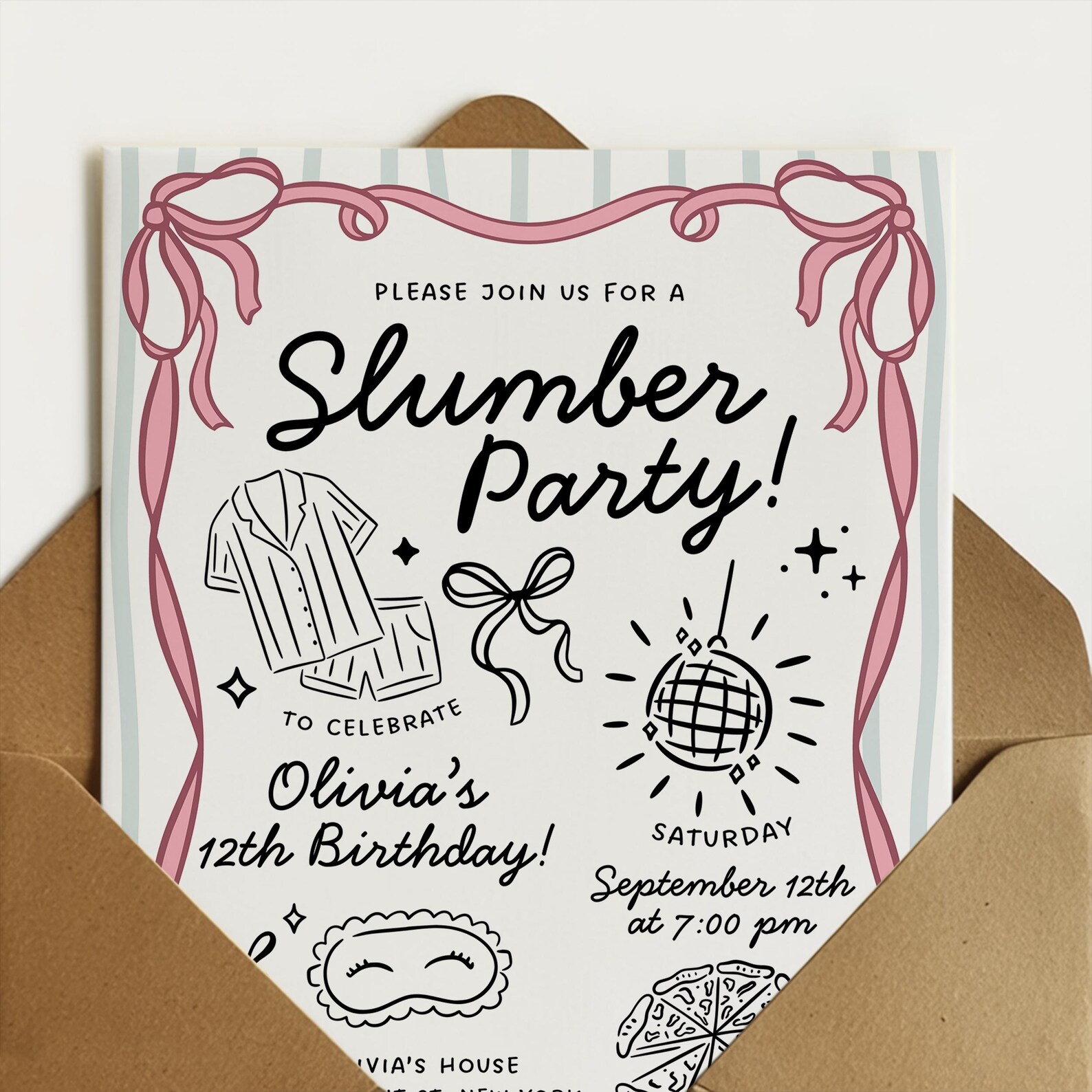 Sleepover Birthday Minimalist Invitation Set Slumber Party Invite Girl ...