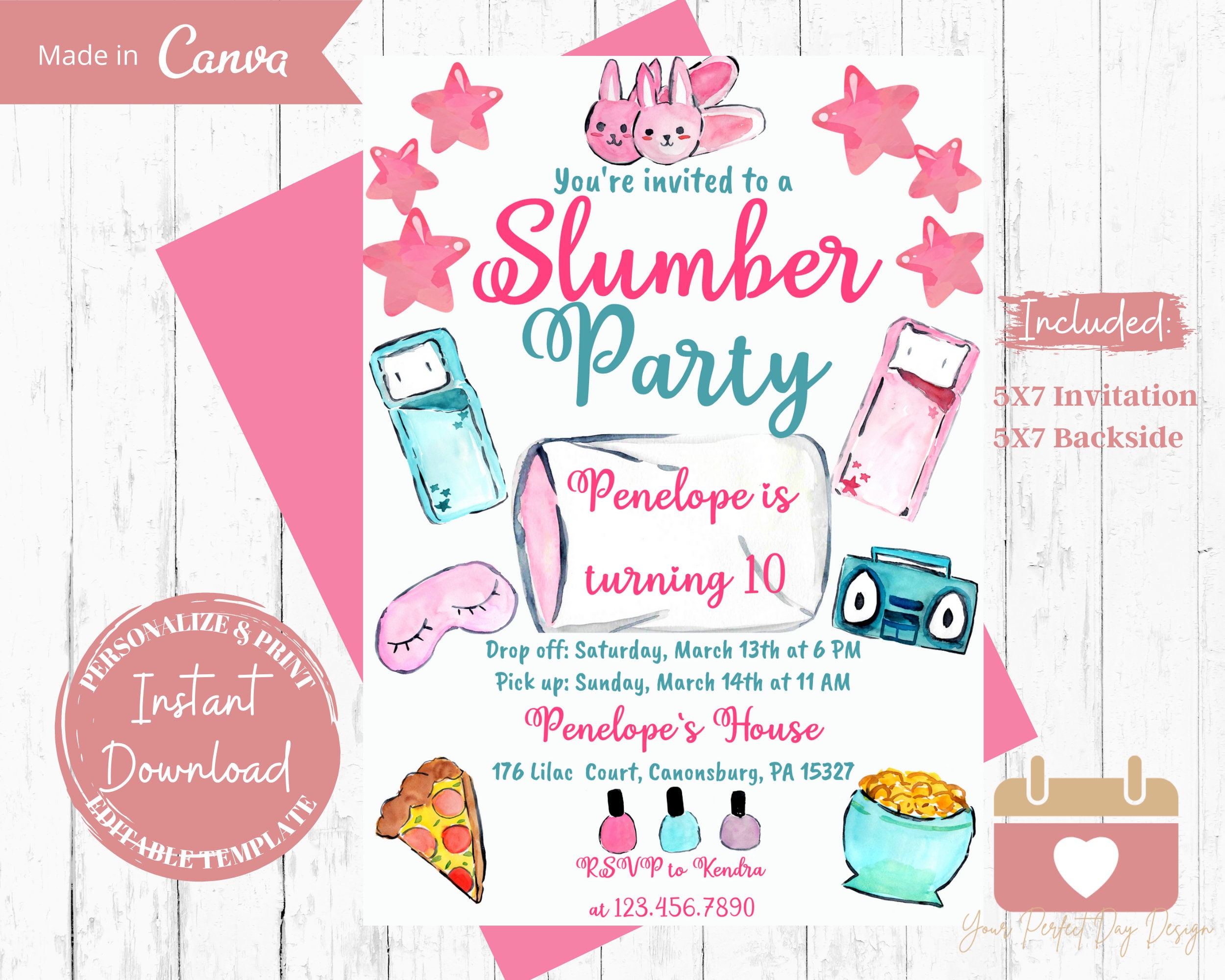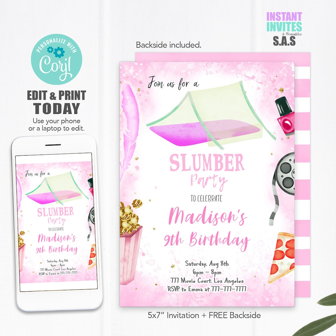EDITABLE Slumber Party Birthday Invitation Sleepover Birthday - Etsy