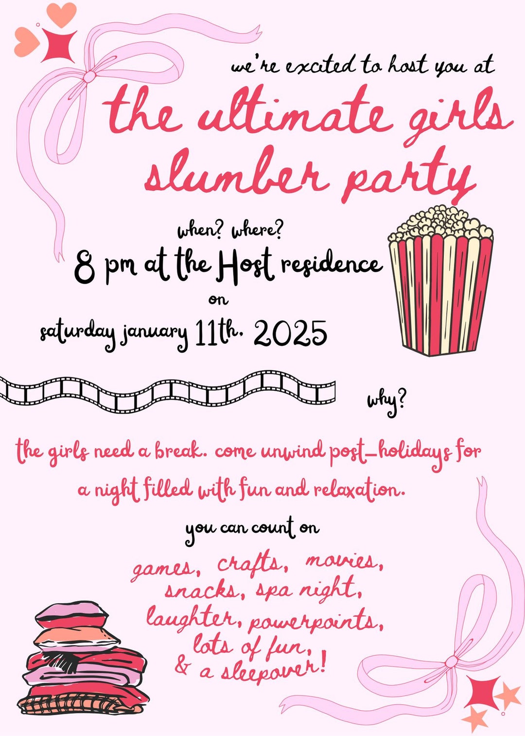pink slumber party invite!! | Slumber party invitations, Sleepover ...