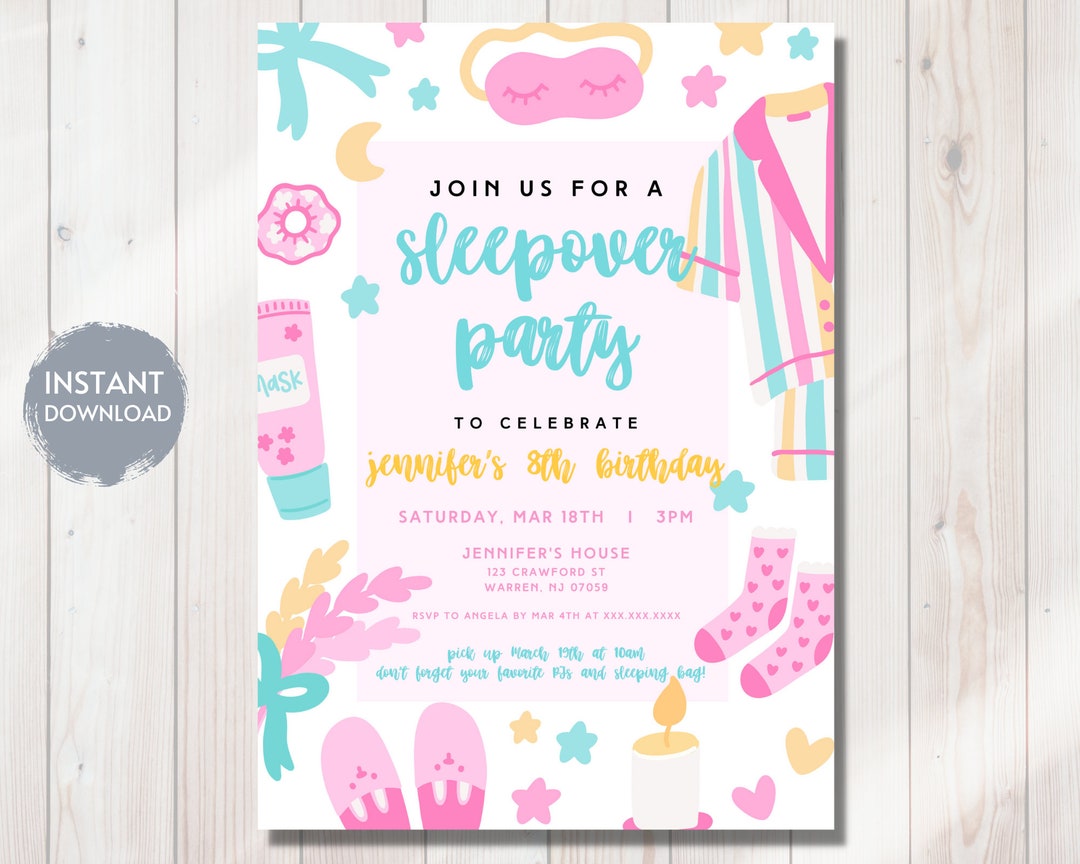 Slumber Party Birthday Invitation Template Sleepover Invite - Etsy
