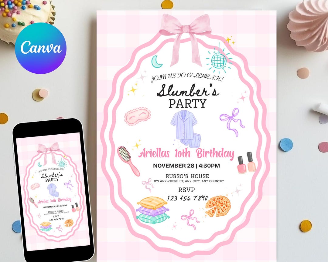 Sleepover Birthday Invitation Slumber Party Digital File - Etsy Canada