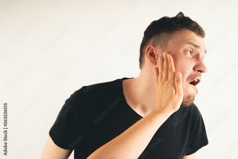 Emotional male getting slapped in face while shouting with closed eyes ...