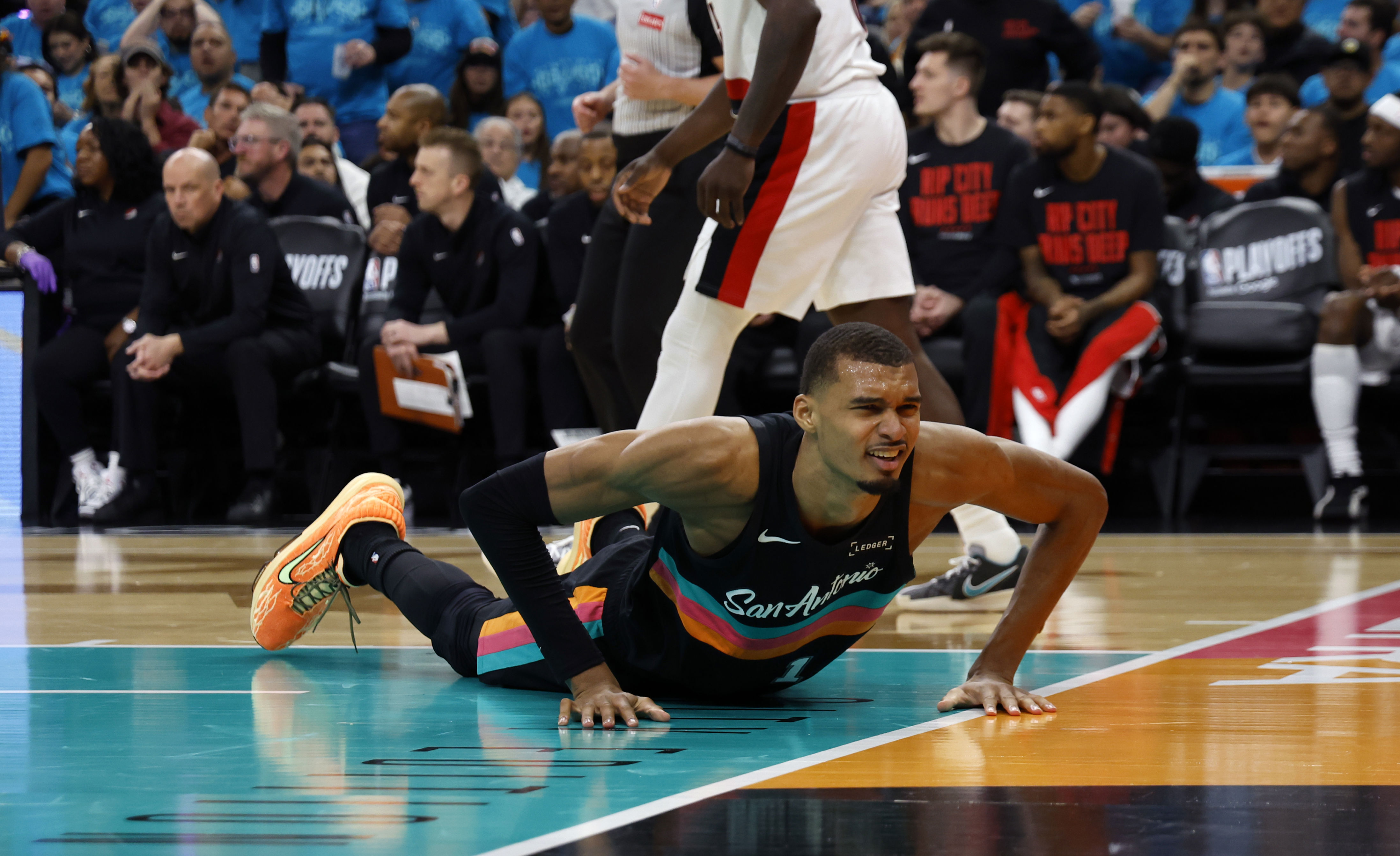 Spurs star Victor Wembanyama leaves Game 2 vs. Portland early, enters ...