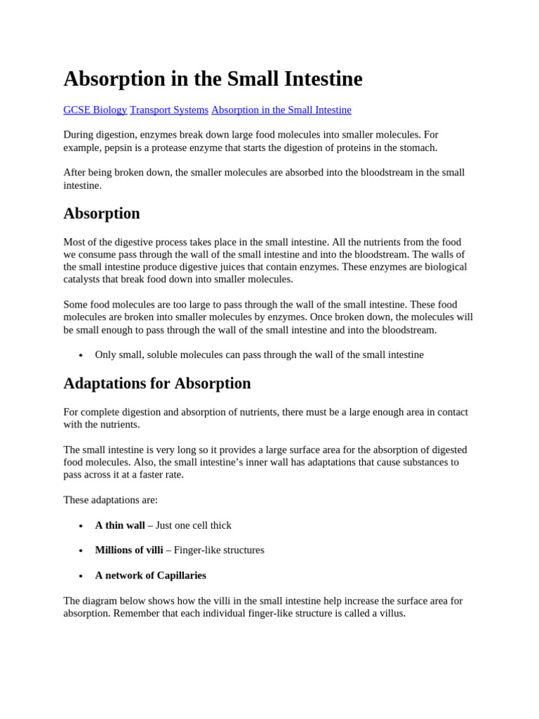 Absorption Processes in the Small Intestine | PDF | Small Intestine ...