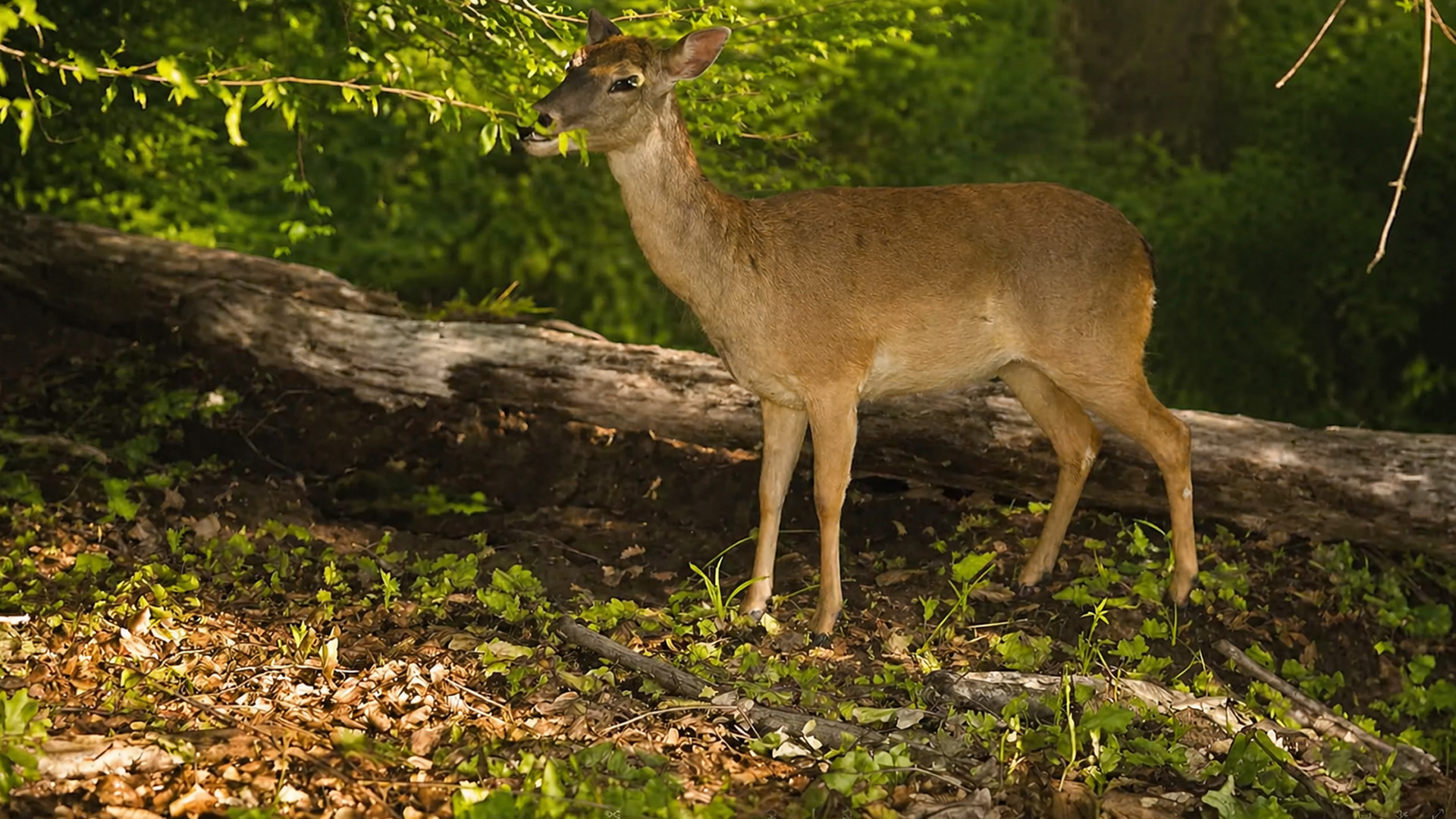 Hidden camera captured what this deer was doing under the trees