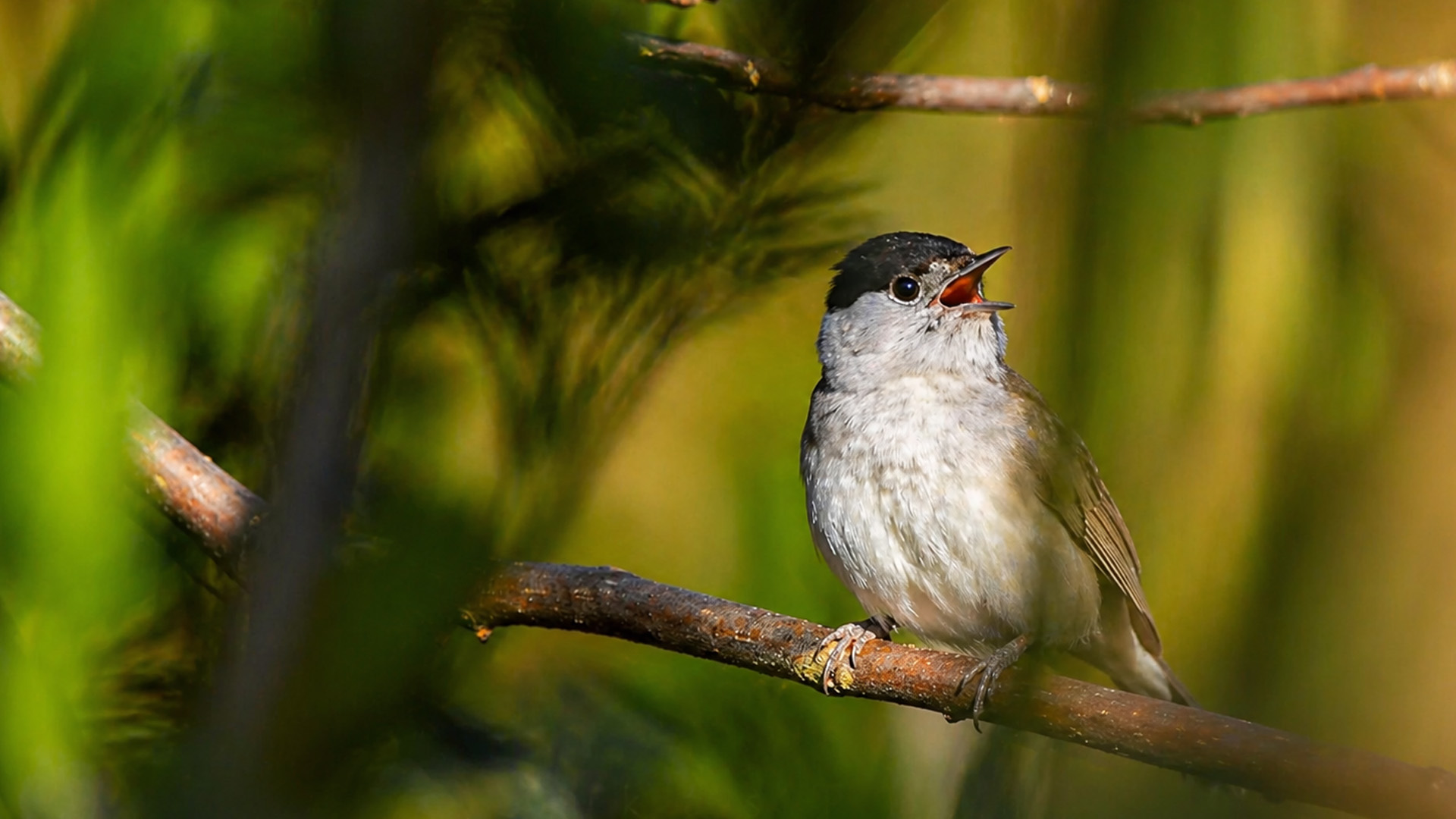 Hidden forest camera captures a tiny bird singing loudly