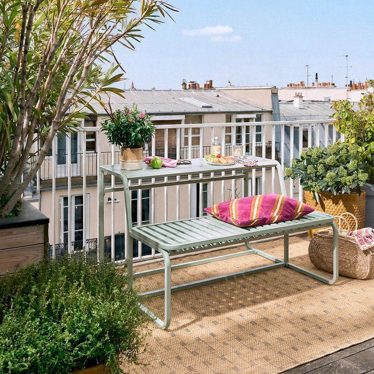This 2-in-1 outdoor table-bench is perfect for small spaces