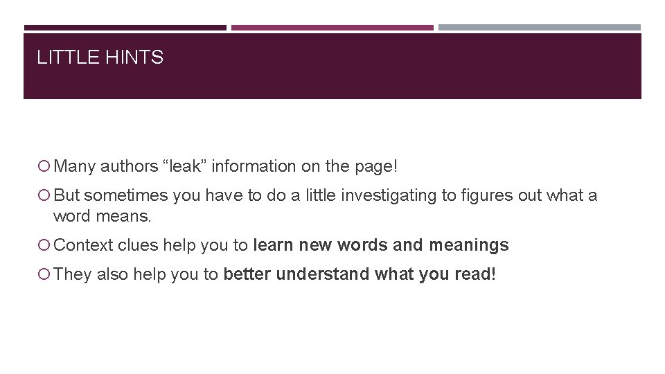 CONTEXT CLUES WHAT ARE THEY LITTLE HINTS Many