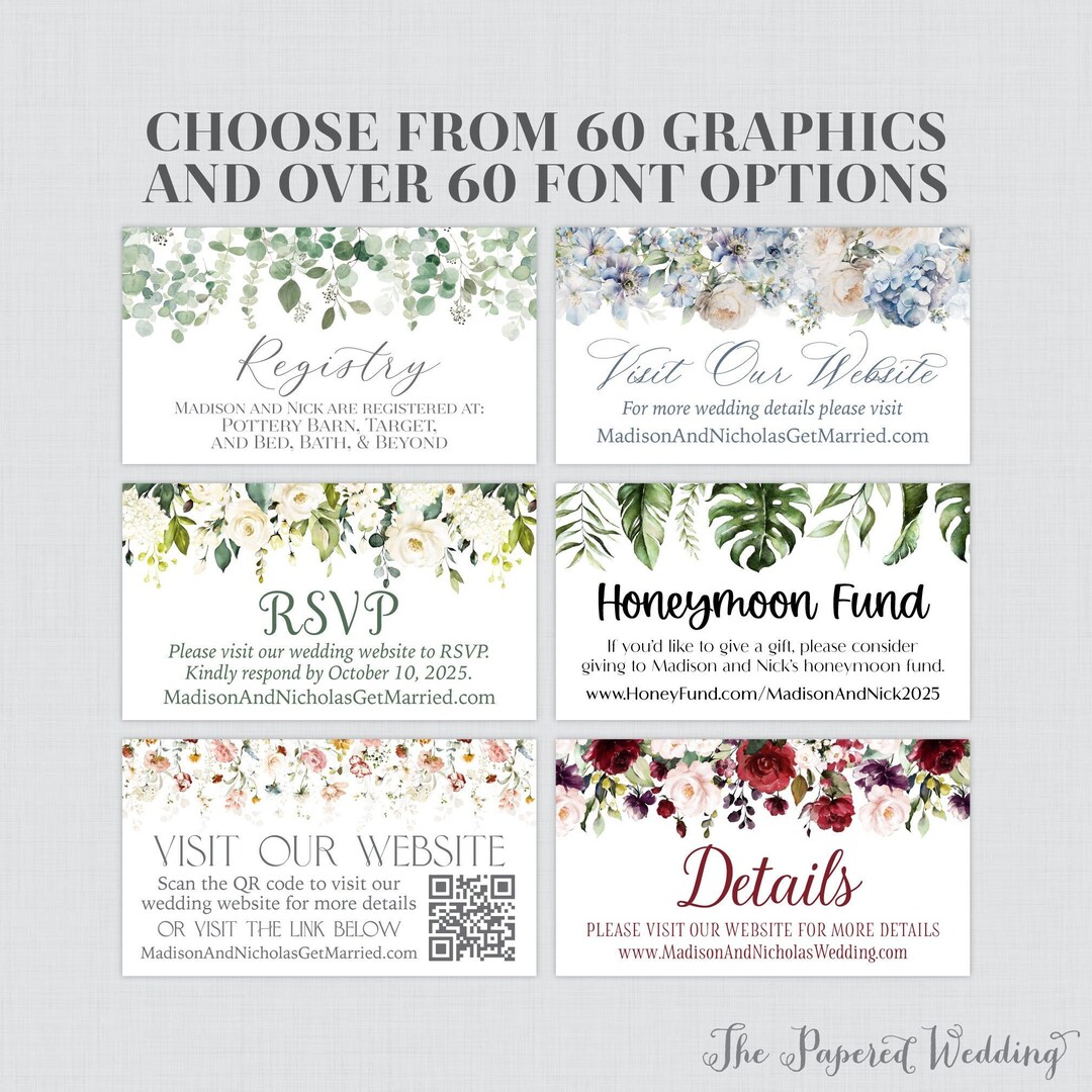 Printable OR Printed Small Invitation Inserts Choose From 60 Floral ...