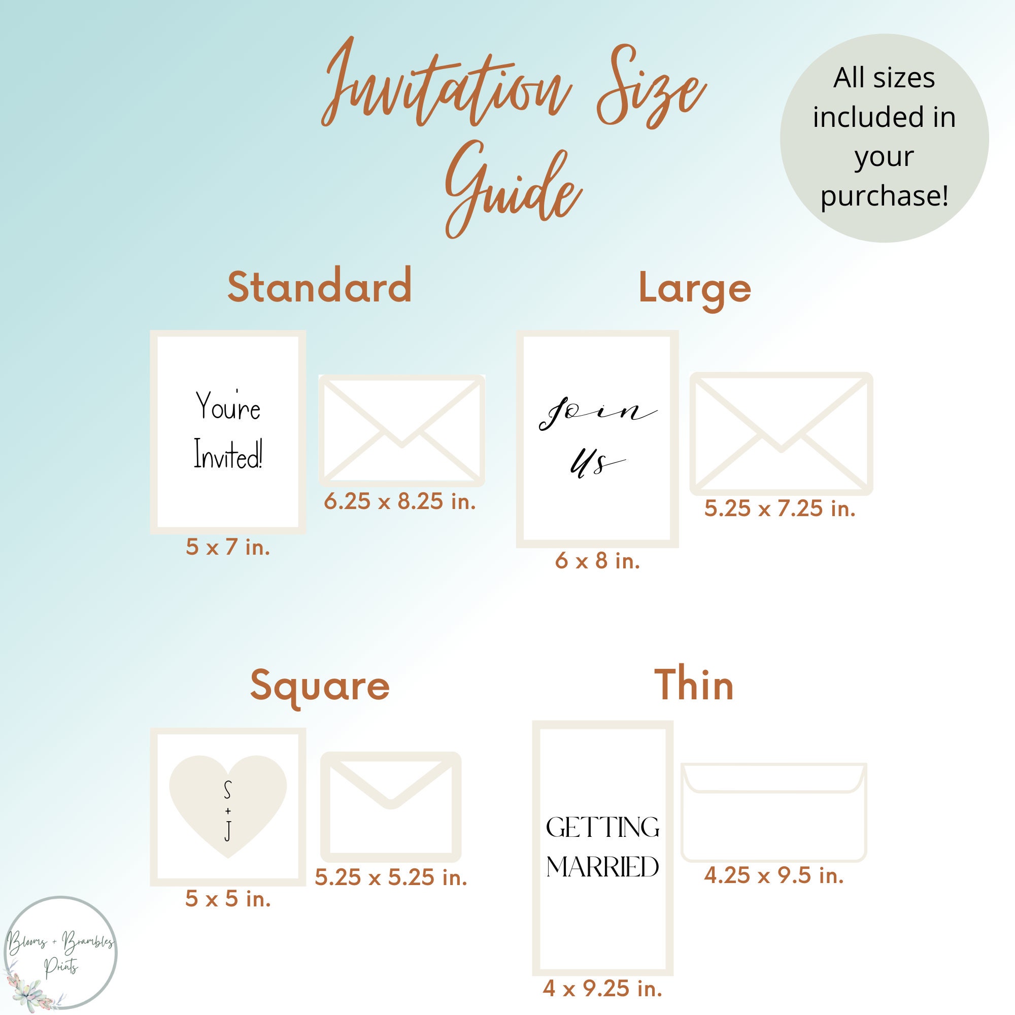 Wedding Invitation Size Chart