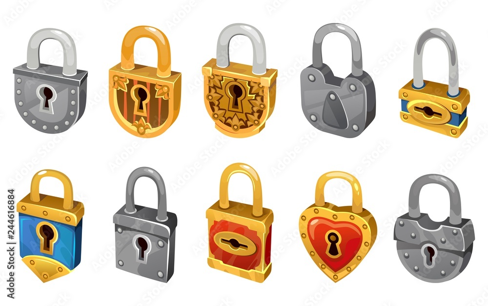 Various Styles of Lock Illustrations Depicting Security Concepts and ...