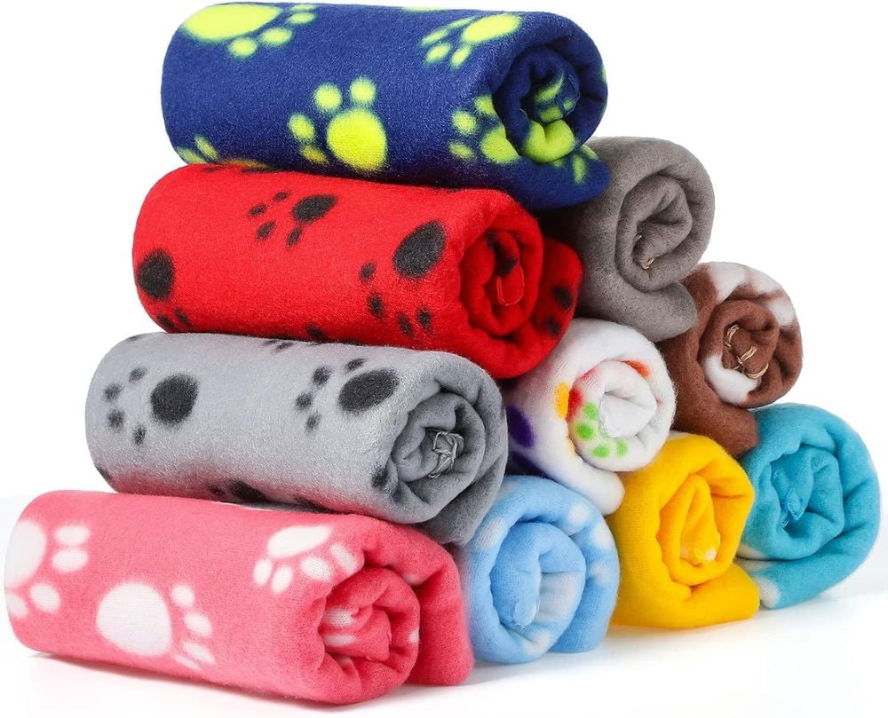 10 Pieces Pet Blankets with Paw Print Soft Fleece Dog Cat Blankets ...