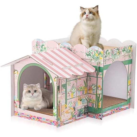 2 Story Cardboard Cat House with Scratcher Pad, Multi Level Durable Cat ...
