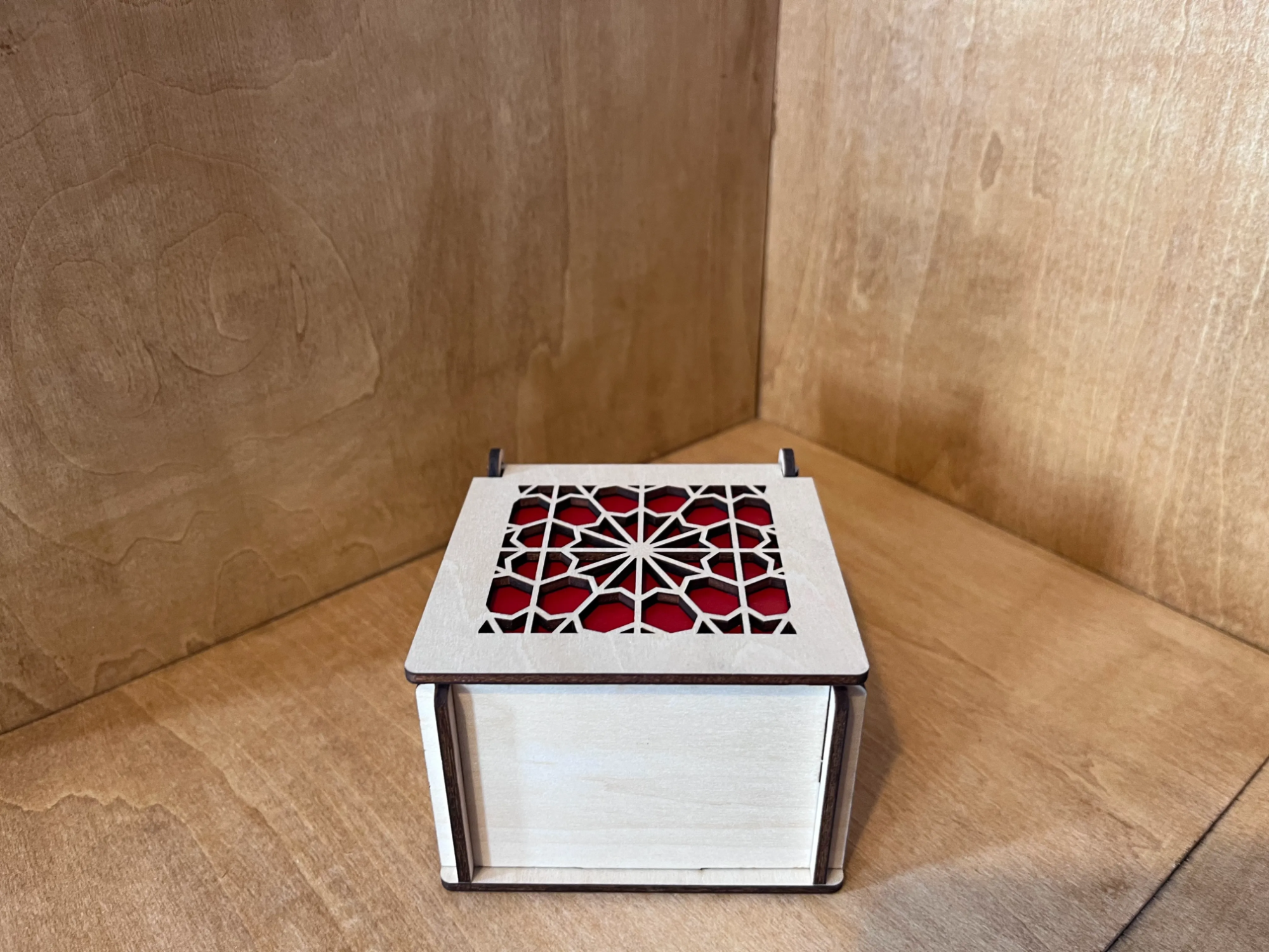 Small Wooden Keepsake Box with Geometric Lattice Lid and coloured ...