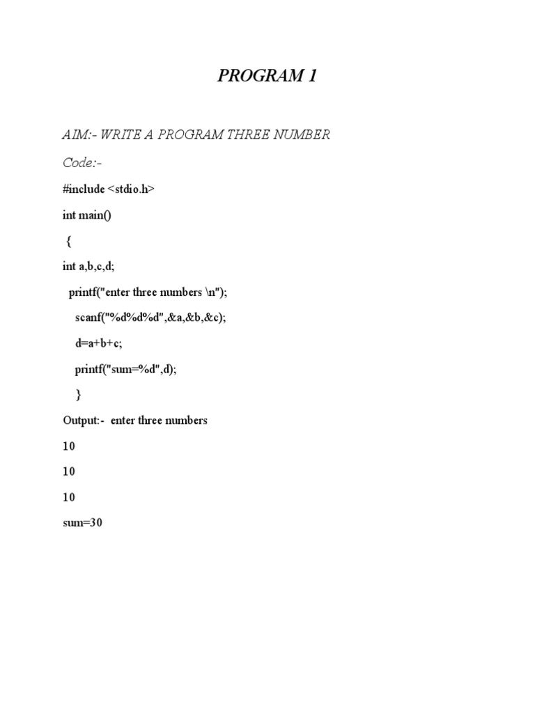 Program 1: Aim:-Write A Program Three Number Code | PDF
