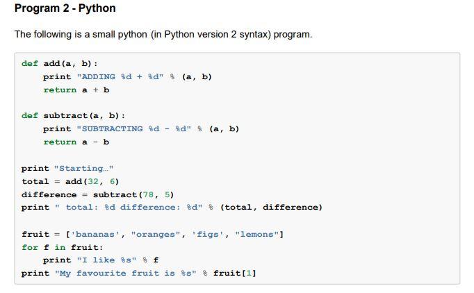 Solved Program 2 - Python The following is a small python | Chegg.com