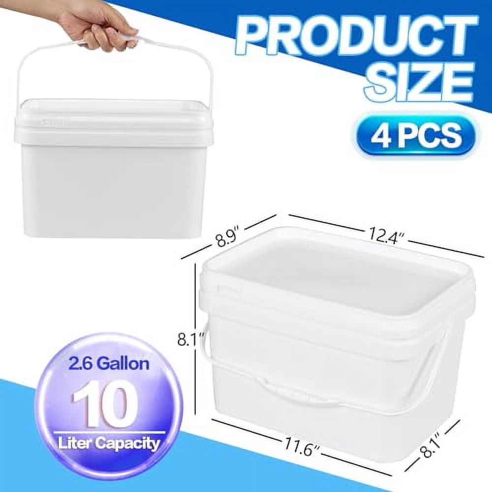 4 Pack 2.6 Gallon Small Buckets with Handle, Rectangular Food Grade ...