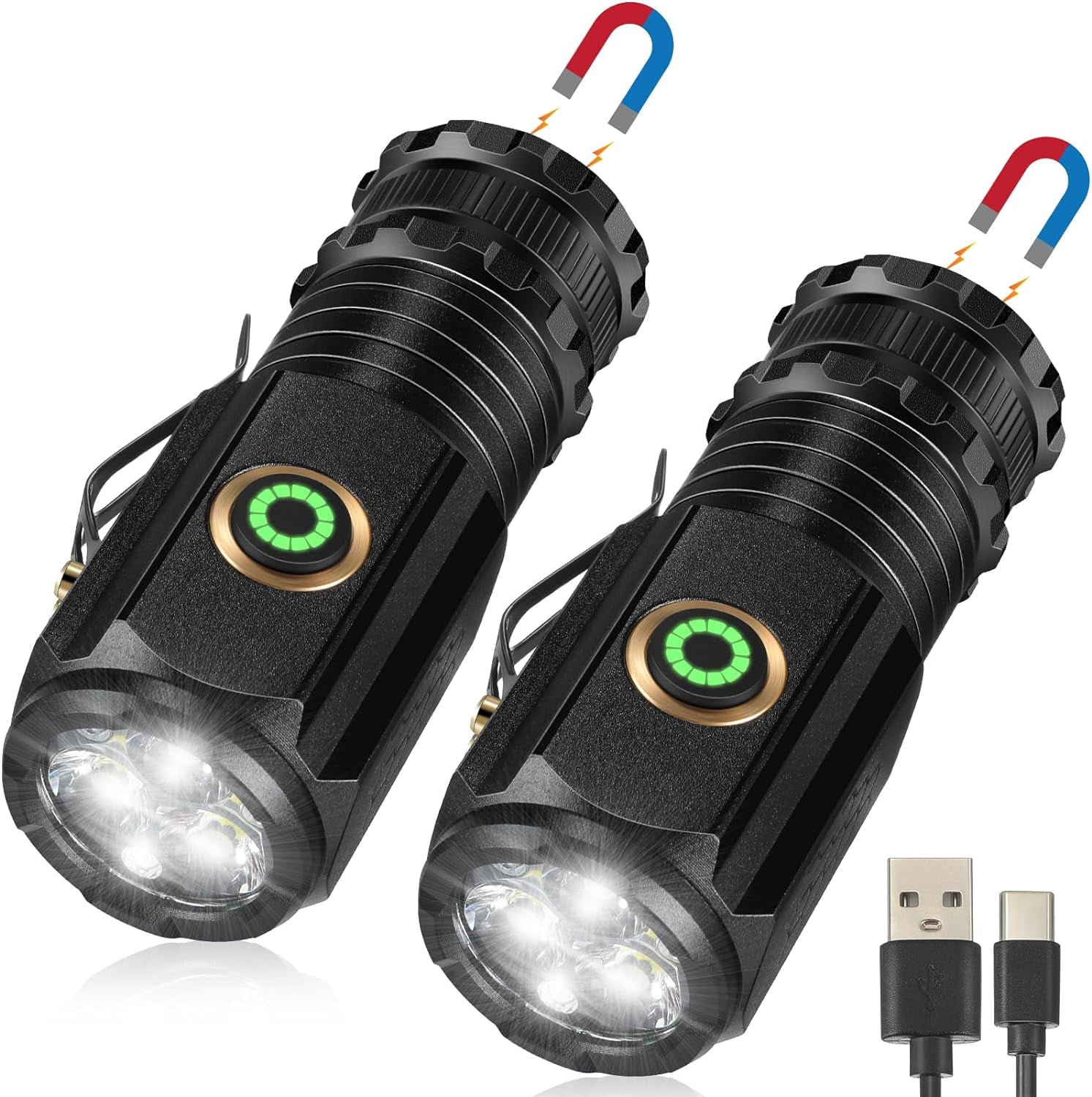 LETMY Rechargeable Mini Flashlights with Magnetic Base, 2 Pack Bright 3 ...