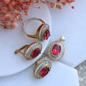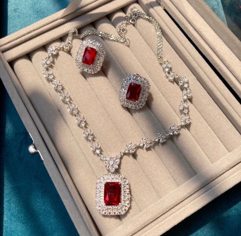 Red Ruby Jewelry Set Ruby Red Wedding Cubic Zirconia Set Red - Etsy