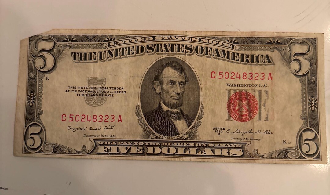 1953 5.00 Red Seal US Note - Small Size Notes - Antique Note - US Small ...