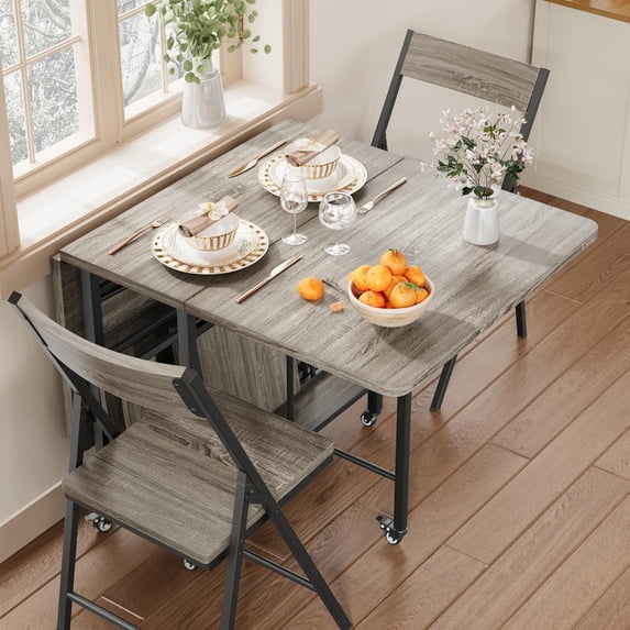 4-Person Foldable Dining Table Set with Drop Leaf Design, Rolling ...