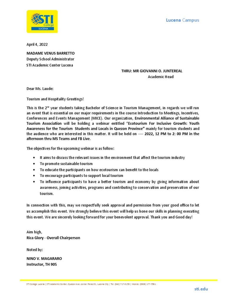 Small Scale Event Proposal - GROUP 3 BSTM 221 SMALL SCALE EVENT ...