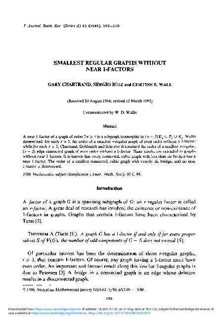 (PDF) Smallest regular graphs without near 1-factors